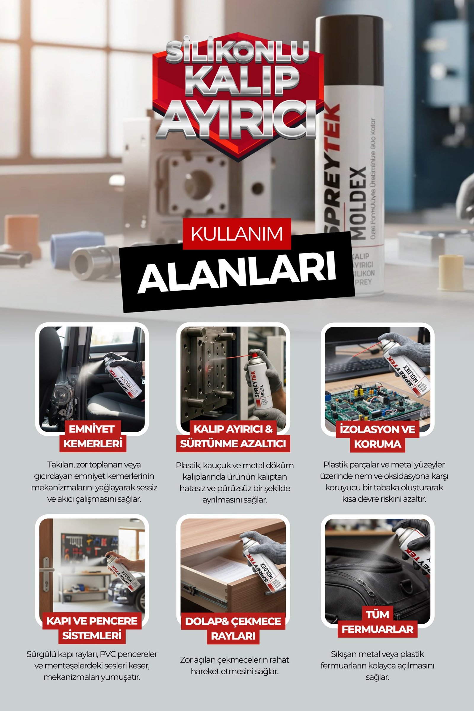 SPREYTEK Moldex Silikonlu Kalıp Ayırıcı Sprey | Sürtünme Azaltıcı, Kalıp Ayırıcı, Çok Amaçlı Yağlayıcı